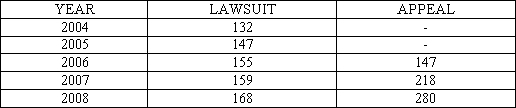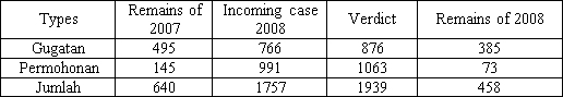Meanwhile, in Sidoarjo Public Court, the number of inkracht case on the lawsuit are 761 cases and on the petition are 645 cases in 2004 until 2008.