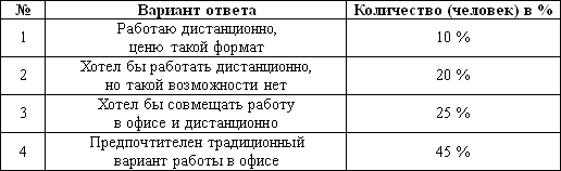 В ходе исследования нами был проведен опрос респондентов в количестве трехсот работающих граждан России в возрасте от 18 до 55 лет. Респондентам было предложено выбрать один из трех вариантов ответа, данные опроса представлены в таблице:
