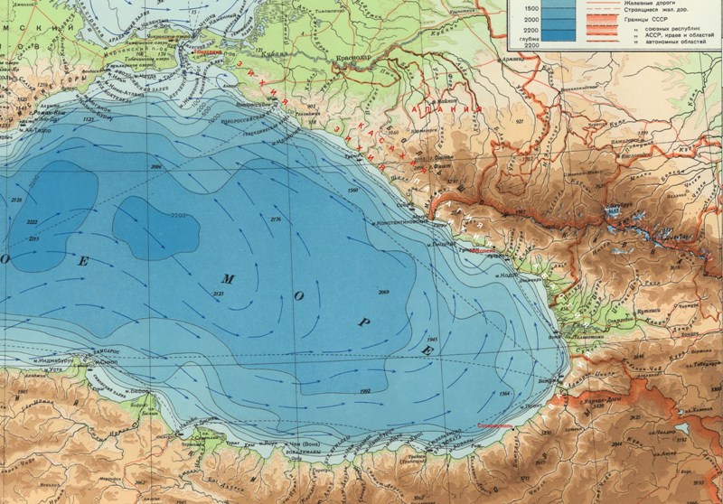 6. Большой Советский Атлас Мира. Физическая карта Черного и Азовского морей. Т. 2. М.: ГУГК при СНК СССР, 1939. Карта 63.