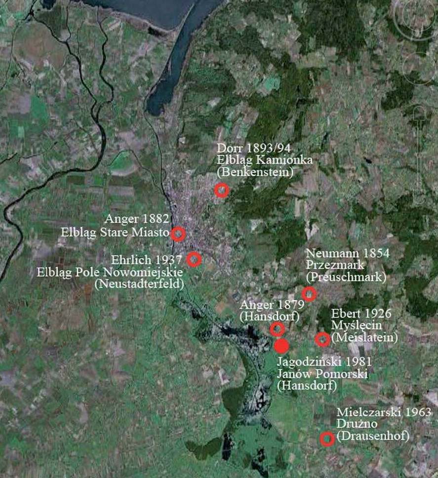 К вопросу о локализации Трусо исследователи приступили в конце XVI в., указав первоначально его положение в районе Гданьска. Современные академические круги скорректировали позицию и поместили древний город в район современного польского города Эльблонг [15, s. 24-44]. Результаты поисков и дискуссий Марек Ягодзински продемонстрировал картографическим материалом (рис. 1).