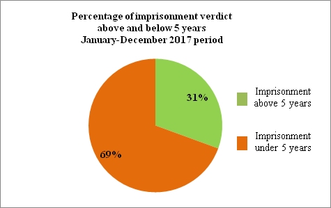 The tendency to impose this verdict turns out to be directly proportional to the number of crimes which is continuously increasing each year. This means that the high number of imprisonment verdict eventually does not positively impact on decreasing the crime rate in society.