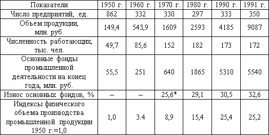 *В этот период была создана основная масса (70-75%) крупных предприятий области, росли объемы промышленного производства, число занятых, стоимость основных фондов.