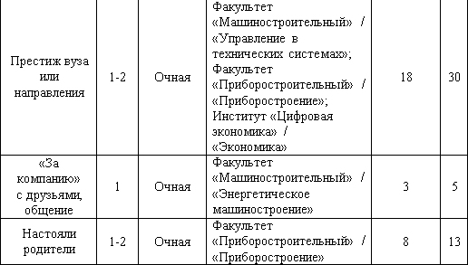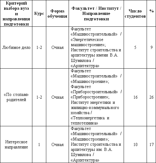 Критерии (мотивы) выбора вуза и направлений подготовки студентов,
