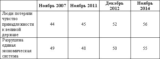 7. Распад СССР в российском общественном мнении. [Электронный ресурс] // Левада-Центр* [сайт]. 01.12.2014. URL: http://goo.gl/NX1yfY (дата обращения: 09.10.2015).