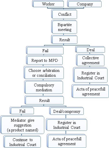 1. Too many processes that have undertaken, including bipartite meeting, report to man power department, choose the arbitration or conciliator, if have no choice, the parties must go to mediation way, if the mediation fails, the parties must go to Industrial Court.
