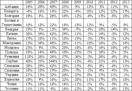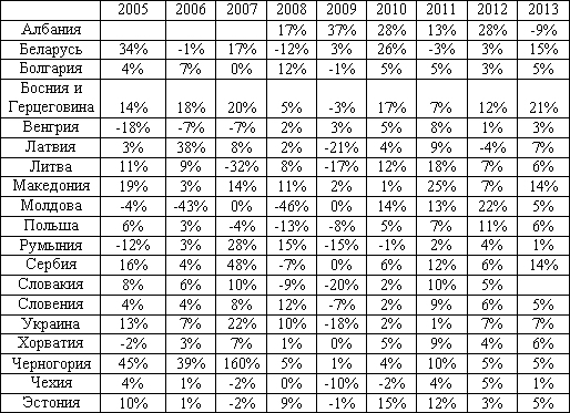 для стран ЦВЕ в 2005-2013 гг.