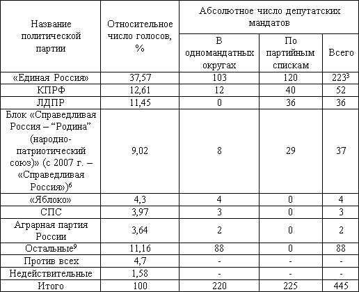 1. Результаты приведены на момент окончательного подсчета фактических голосов и не учитывают дальнейших пертурбаций депутатов в составе Думы.