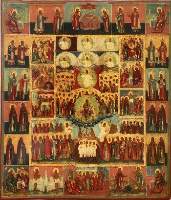 В XVIII-XIX вв. также стремительно увеличилось число икон святых, где одновременно изображено по нескольку канонизированных персонажей. До XVII в. на одной иконе изображались только те святые, которые были близки при земной жизни и которые вместе приняли мученичество или совершили другие подвиги веры. К таким святым относятся, например, святые врачи-бессребреники Косма и Дамиан, совместно лечившие людей; убитые братом Святополком святые страстотерпцы Глеб и Борис; преподобные Антоний и Феодосий Печерские, вместе основавшие Киево-Печерскую Лавру.